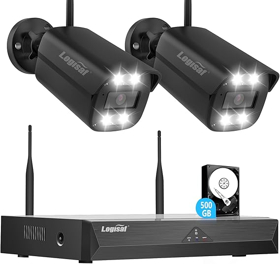 防犯カメラ 屋外 ワイヤレス Logisaf 24時間録画 300万画素 防犯カメラセット 2台 10台増設 wifi 監視カメラ 屋外 夜間カラー撮影 動体検知録画 AI人体検知 ワイヤレス防犯カメラ リピータ 遠隔監視 Eseecloudアプリ 警報通知 IOS/Android 双方向通話 日本語説明書 IP67防水防塵 適格請求書(カメラ2台+500万録画機+HDD内蔵) a