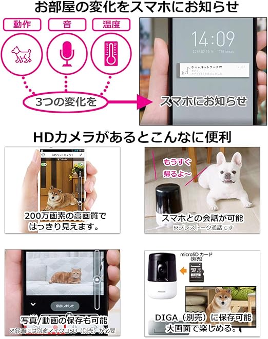 パナソニック ペットカメラ スマ@ホーム 自動追尾機能搭載 屋内HDペットカメラ KX-HDN205-K a