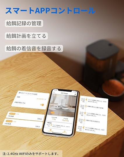 【スマートアプリで簡単管理】専用のスマートフォンアプリを使って、ペットの食事スケジュールを簡単に管理。外出中でもスマホ一つでペットの食事を確認・調整できるので、忙しい毎日でもペットに最適な食事