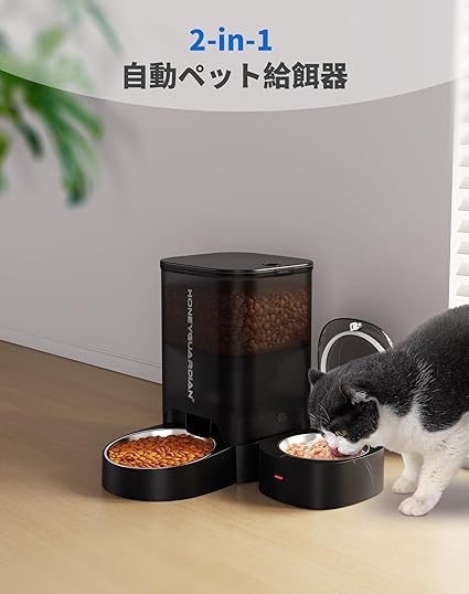 HONEYGUARDIAN 自動給餌器 猫 ウェットフード冷蔵 WiFi接続式 1日6食 定時定量 3.5L容量 自動餌やり機 ウェットフードボウル付き 2WAY給電 音声録音 4重鮮度保持 猫 中小型犬用 ステンレス製ボウル お手入れ簡単 ペット給餌器 iOS Android対応 a