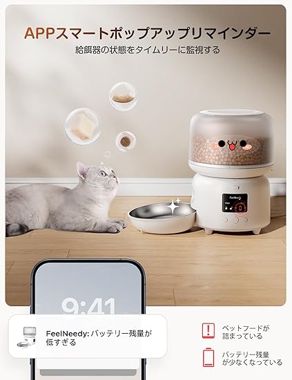 【スマホアプリで遠隔操作、外出でも安心】FEELNEEDY自動給餌器は、2.4GHzのWiFiに接続、残業や外出などの時にスマホで定時定量に餌やりができ、ペットの食事を心配する必要がなく、飼い主が安心できる自動給餌器です。家族もアプリから登録してペットの食事プランをチックして管理できて、とても便利です。