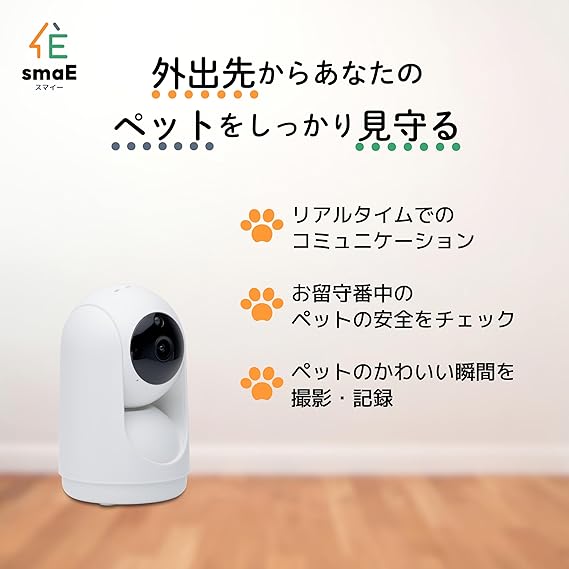 【smaE(スマイー)】小型ペットカメラ 見守りカメラ iphone/android対応 日本企業による安心サポート/寄付付き商品/フルHD360° 全方位視野 広角レンズ スマホ連動 暗視・動体検知・追跡機能付き プライベートモード搭載 家族共有 防犯カメラ 室内 Alexa対応 犬/猫/ハムスター/爬虫類/アクアリウム/介護 監視カメラ [メーカー保証1年] a