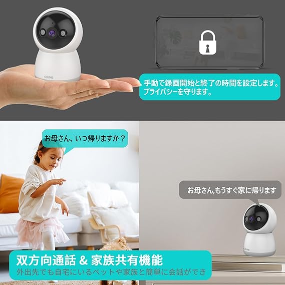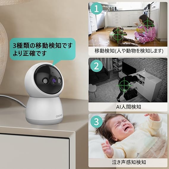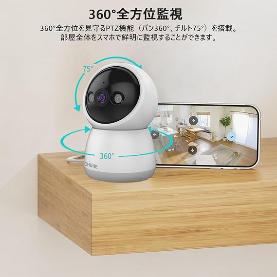 【400万画素・360°自動定期見回り】(見守りカメラ) ペットカメラ/ベビーモニター/ペット見守り/屋内カメラ/ネットワークカメラ/360°監視/人体検出/赤ちゃんの泣き声を通報しプッシュ通知/広角撮影/遠隔操作/双方向通話/家族共有/室内用ネットワークカメラ/玄関カメラCHUHE a