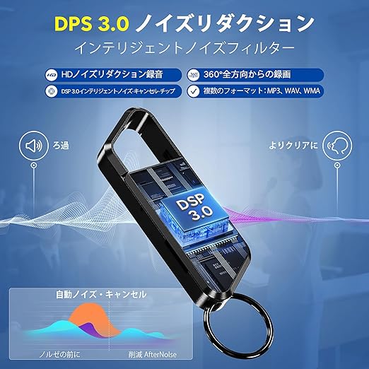ポータブル録音機 Coptdyy ボイスレコーダー 長時間録音 64GB 1600 時間保存 360° 収録 & DSP3.0-AI インテリジェントノイズキャンセル 高音? MP3/WAV 対応 学生・会議・取材用 日本語サポート付き a