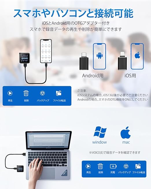 【ワンタッチで録音・保存!操作簡単!】ボイスレコーダーはボタンをスライドだけで録音を簡単に開始・保存し、大切な情報をいつでもどこでも逃げさずに録音できます。液晶画面がついて電池残量や録音の状況が一目瞭然で確認!ボイスレコーダー 小型は録音する時、画面が消えますし、コンパクトで胸ポケットに入れても目が立たず、起動音もないので超安心!