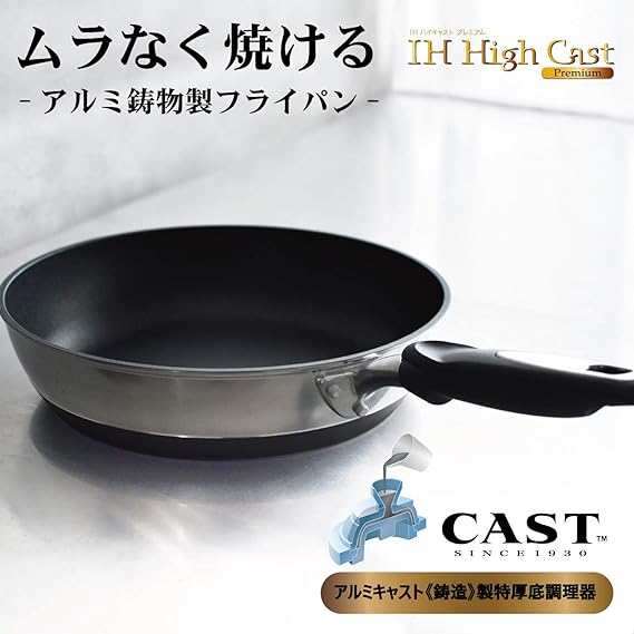 北陸アルミ フライパン 22cm アルミ IH対応 日本製 全面均一加熱 時短フライパン 丈夫 frying pan made in japan アルミ鋳物製 キャスト 熱変形に強い 木柄 木ハンドル 金属ヘラ使用 累計販売数100万枚 テフロン加工 ハイグレードコーティング 耐久性 焦げ付きにくい ジャパンクオリティ PFOAフリー IHハイキャスト プレミアム A-2662 a