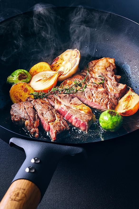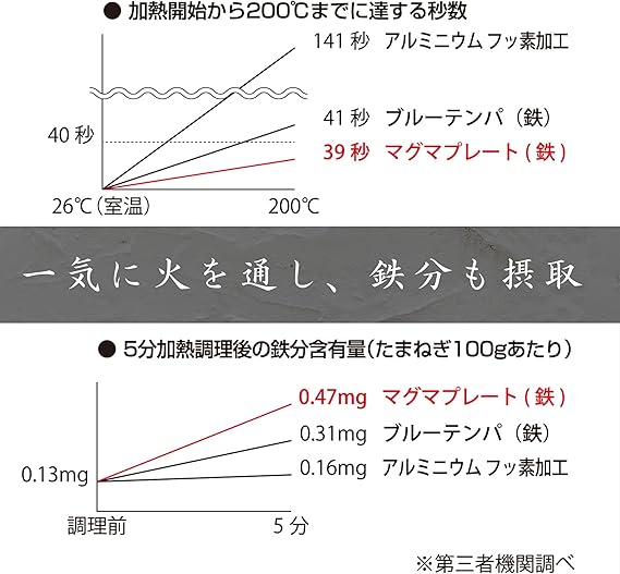 素材・材質:マグマプレート(鉄)、取っ手:天然木(ブナ材) 取っ手取付金具:アルミダイキャスト