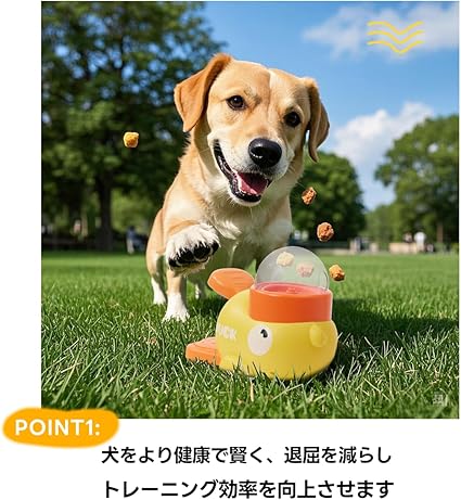 【ワンタッチで愛犬のごはんタイムが楽しく進化!】アヒルの可愛いデザインが愛犬の興味を刺激!ボタンを押すだけでフードが排出され、狩猟本能を満たす仕組み。成功時の達成感でストレス解消&食欲促進。毎日の食事がワクワク遊びに早変わりします。