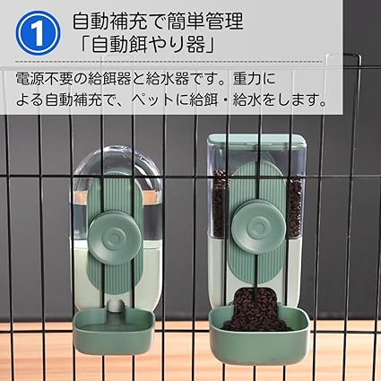 ateena 自動給餌器 自動餌やり機 犬 猫 うさぎ 自動給水器 餌 水飲み えさやり 自動 ケージ取り付け対応 電池不要 A (グレー, 給水器) a