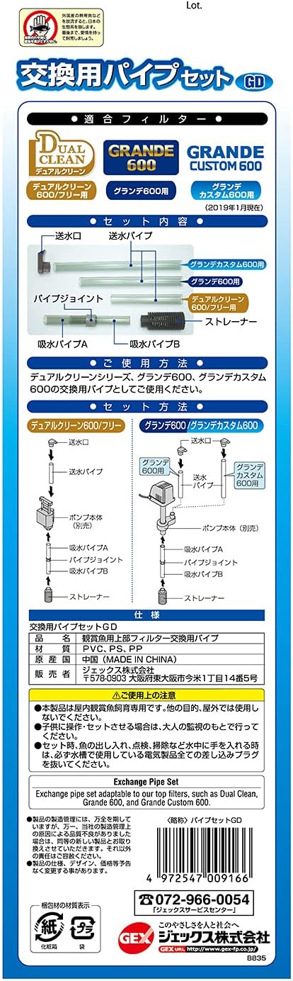 ジェックス GEX AQUA FILTER 交換用パイプセット(GD・DC用) 交換用パイプ グランデ600・グランデカスタム600・デュアルクリーン用 上部式フィルター用交換パーツ a