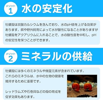 炭酸カルシウムを豊富に含み、水のpHを調整して安定性を維持