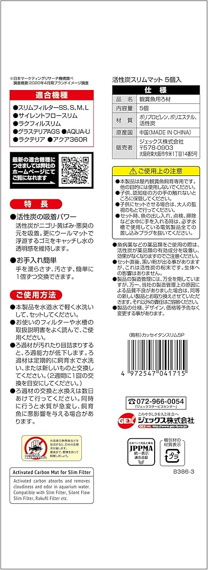 ジェックス GEX AQUA FILTER 活性炭スリムマット5個入 交換ろ過材 スリムフィルター サイレントフロースリム a