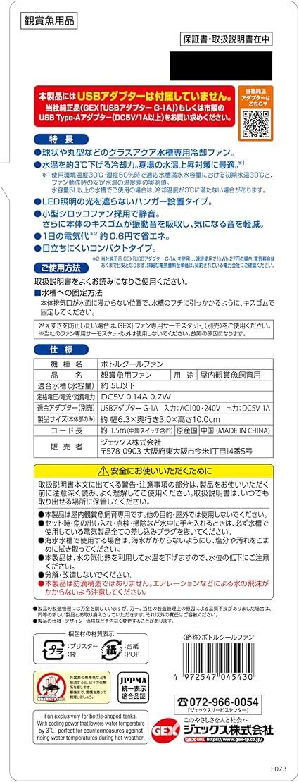 ジェックス ボトルクールファン 小型水槽用冷却ファン 曲面水槽対応 簡単設置 水温上昇対策 a