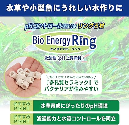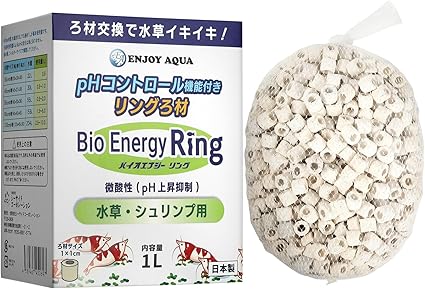 pHコントロール機能付き リングろ材 バイオエナジーリング 多孔質 セラミック ろ過材 ネット付属 日本製 (1L (サイズ1㎝×1㎝), 微酸性(水草・シュリンプ用)) a