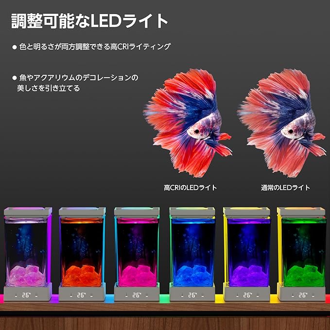 小型ベタ水槽 1.4Lコンパクト水槽キット 20-30°C温度設定 LEDライト付き 水換え簡単 セットアップ・メンテナンス簡単 スタータータンク最適 ホワイト a