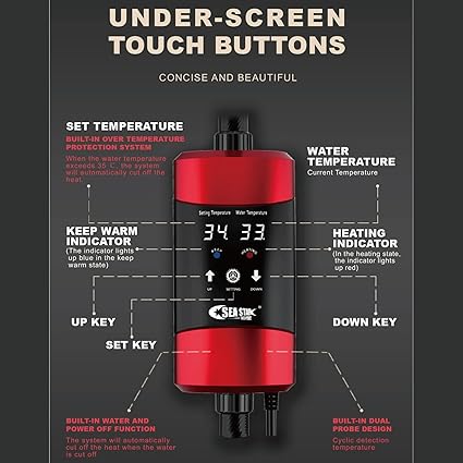 【安全性と信頼性】 このヒーターは温水回路を備えており、水と電気が完全に分離されています。これにより、漏電のリスクを大幅に低減し、安全かつ信頼性の高い使用が可能です。安心して水槽の加熱をお任せいただけます。