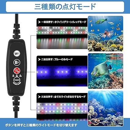 DEWEL 水槽 ライト 水槽 ledライト アクアリウム LEDライト 水槽照明 熱帯魚ライト タイマー 6H/10H/12H/24H 防水 3つの照明モード 10段階明るさ調整 観賞魚飼育 水草育成 スライド式 水槽対応 省エネ 50000時 長寿命 (60-75cm) a