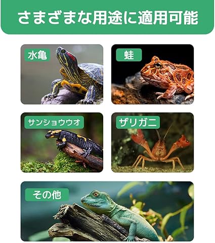 本製品は、日光浴によるビタミンDの生成を助け、甲羅の健康維持や成長をしっかりサポートします。体力不足やストレスを防ぎ、小型から中型の亀が活発に過ごせるように設計されています。自然な呼吸