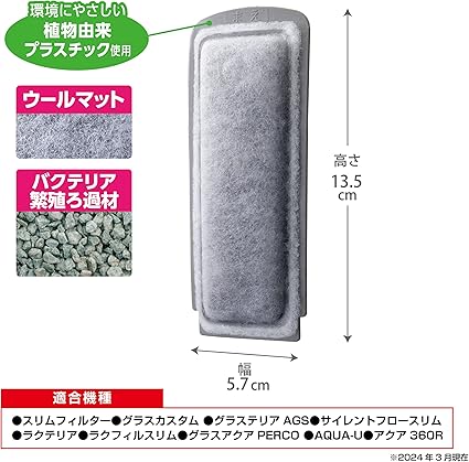 【交換の目安】3週間に1回。 【適合機種】スリムフィルター/サイレントフロースリム/グラスアクアPERCO/グラスカスタム/グラステリアAGS/ラクテリア/ラ