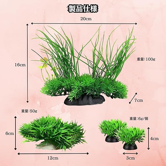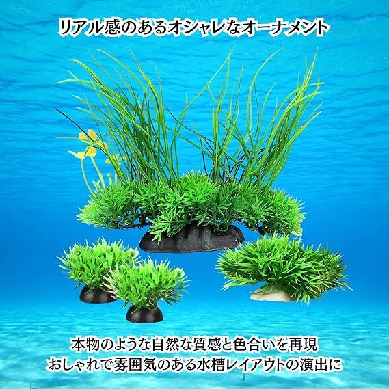 【リアルな水槽オーナメント】水草をモチーフにした、リアルなアクアリウムオーナメント3種セットです。独自のハンドメイド塗装により、本物のような自然な質感と色合いを再現しております。おしゃれで味のある、素敵な水槽レイアウトの演出に最適です。