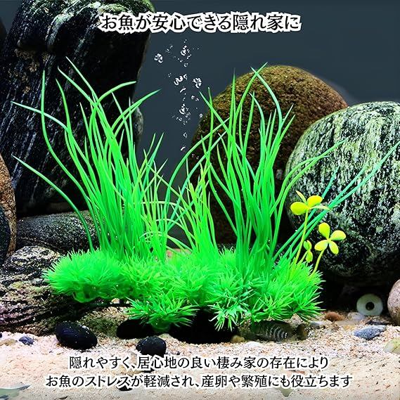 Charmoon アクアリウム 人工水草 オーナメント 水槽 隠れ家 フェイク 装飾 3種4個 セット a