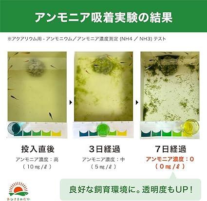 【アンモニア吸着で水質改善】 メダカや水生生物が排出する有害なアンモニアを吸着し、水質の浄化と悪化防止に役立ちます。