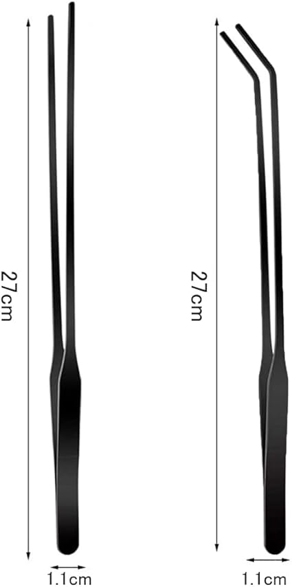 YFFSFDC ピンセット 水槽用ピンセット 2本セット 27cm ステンレススチール製 細かい 実用 便利 多機能 水槽管理 観葉植物 水草植栽 水族館用 ストレート & カーブ (ブラック) a