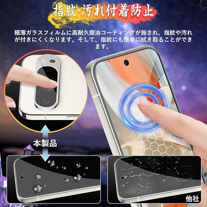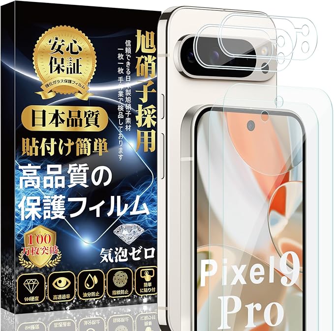 Google Pixel 9 Proガラスフィルム(2枚)+ Google Pixel 9 Proカメラフィルム(2枚)【旭硝子素材製 】 Google Pixel 9 Pro フィルム 硬度9H 貼り付け簡単 気泡防止 自動吸着 撥水撥油 指紋防止 飛散防止 ピクセル9 Pro 保護フィルム【4枚入り】 a
