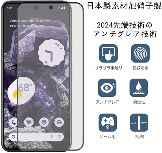 【アンチグレア】【2枚入り】Google Pixel 9A 用ガラスフィルム さらさら グーグル ピクセル 9a 専用 アンチグレア ガラスフィルム 顔認証対応 旭硝子製 硬度9H 反射防止 浮き防止 気泡レス 指紋防止 サラサラ タッチ感 ゲーム用 液晶保護フィルム a