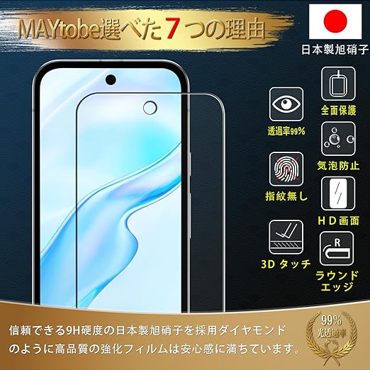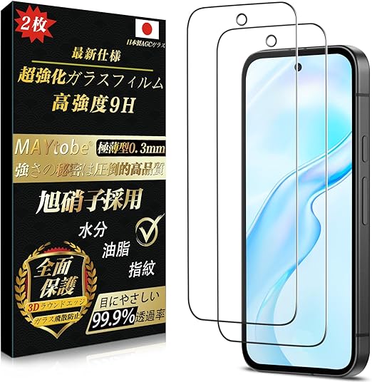 【旭硝子ガラス 2枚】MAYtobe Google Pixel 9a ガラスフィルム 日本製旭硝子 AGCガラス 全面保護 強化ガラス 硬度9H 超耐久 極薄 99%高透過率 3D Touch対応 液晶保護フィルム 耐衝撃 気泡なし 指紋防止 飛散防止 撥水撥油 自動吸着 貼り付け簡単 グーグルピクセル9a 保護フィルム a