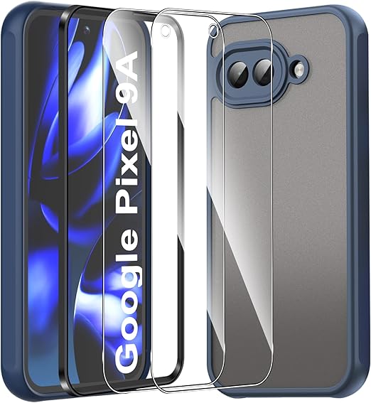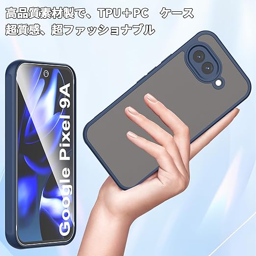 For Google Pixel 9a ケース 2枚ガラスフィルム付き Mosasa Google Pixel 9a カバー マット感 半透明 TPU+PC レンズ保護薄型 指紋防止 落下防止 安心保護 軽量 全面保護カバー (ブルー) a