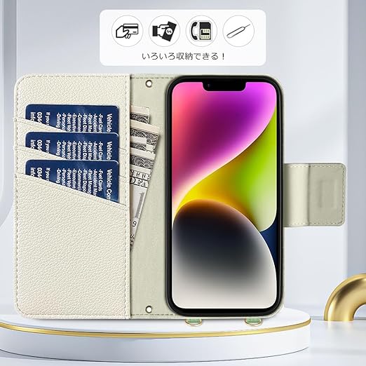 【カード収納&横置きスタンド】手帳型ケース、内側に実用性のカード入れポケット×3、内側ポケット×1、カード類、現金、名刺、免許証入れなどを収納でき、通勤も通学にも楽々タイプです。水平ブラケット機能が付いて
