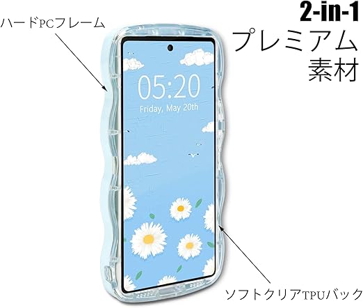 ★【2in1特別なデザインです&着脱簡単】2in1はサイド周りのウェーブ部分はプラスチック素材で取り外し可能です。 キャンディカラーの波状のエッジは、透明な ソフトTPU部分から分離することができます。取り外しも簡単,お手入れし易い。