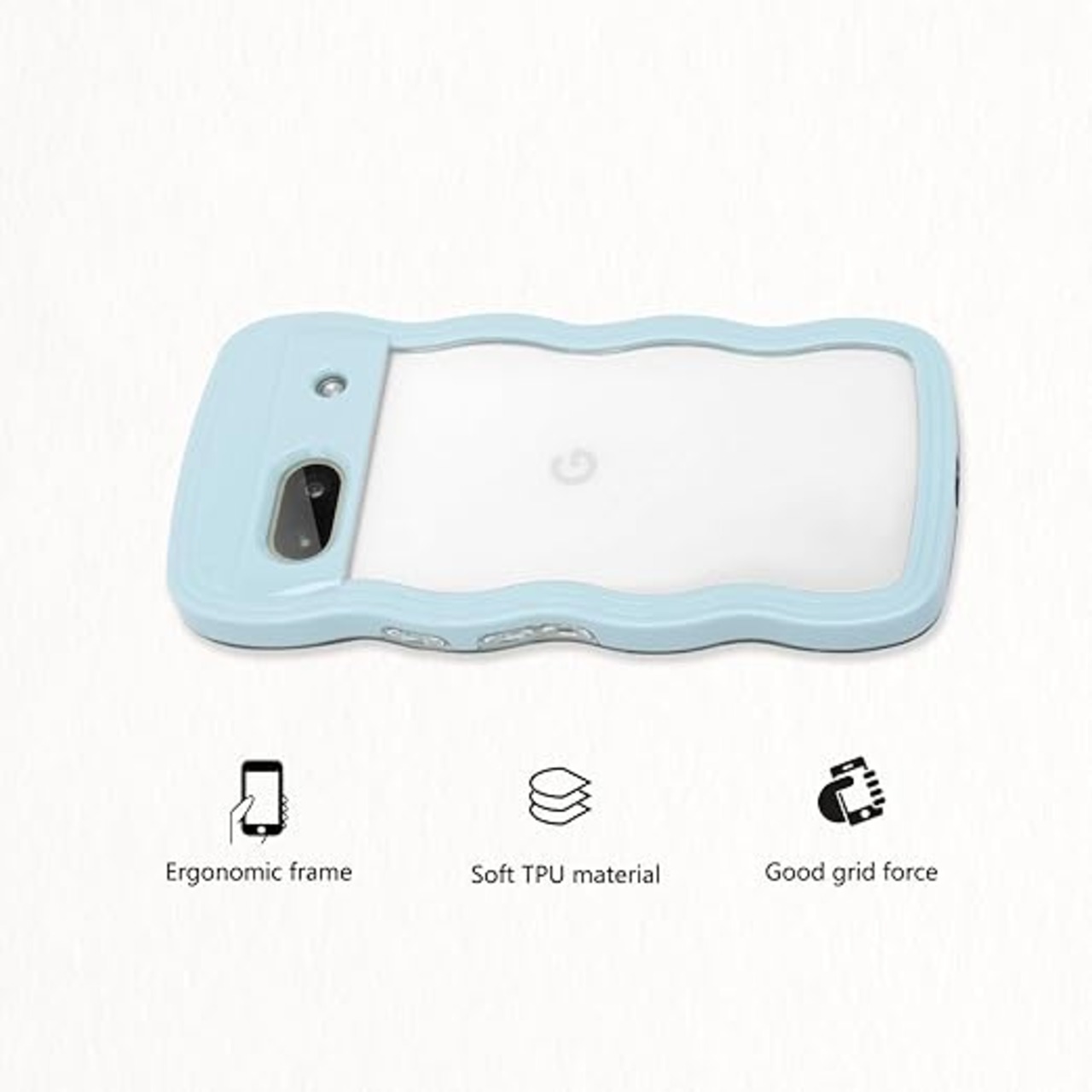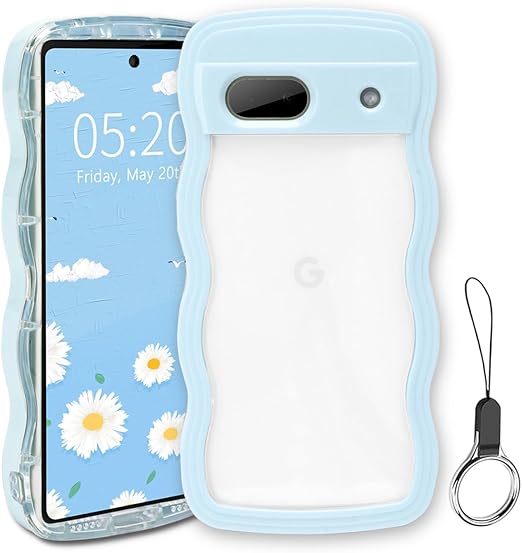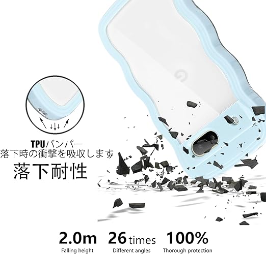 Google Pixel 8 ケース クリア ウェーブ ピクセル 8 TPU波状フレーム うねうね グーグル ピクセル8 滑り止め スマホケースウェーブ デザイン 手にフィット 韓国 可愛い 女子向け 透明 ケースカバー 人気 落下防止 耐衝撃 ストラップホール付き グーグルピクセル8 なみなみ ワイヤレス充電対応(Google Pixel 8-ブルー) a