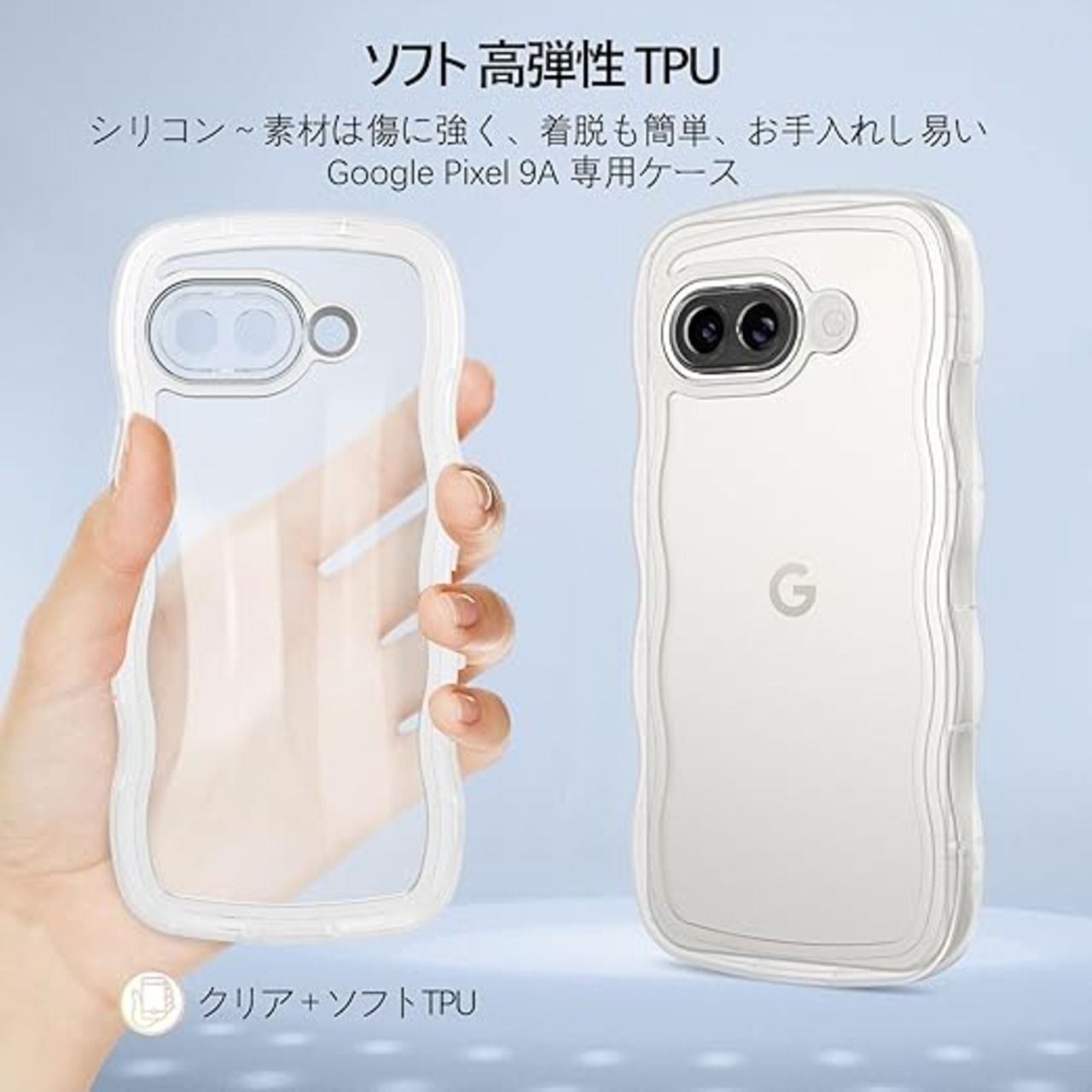【ウェーブ湾曲縁&TPU肌触り】湾曲したエッジにより握りやすくなっています。Pixel 9A透明ケースは滑らかな液体シリコンゴムと柔らかいTPU製で、耐傷性、耐指紋性、耐衝撃性に優れ、取り外しも簡単,お手入れし易い。