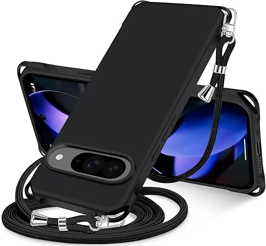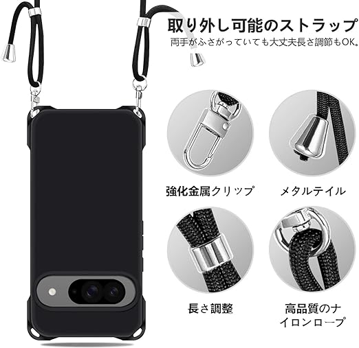 Google Pixel 9 / Pixel 9 Pro 用 ケース クリア ショルダー pixel9 / 9pro 用 スマホケース ピクセル 9 カバー 肩掛け 斜めかけ 縄掛けケース 透明 薄型 軽量 TPU 紐付き 斜めがけ 織りストラップ付き ネックストラップ ショルダー ケース 縦/横 2WAY 長さ調整可能 取り外し可能 落下防止 紛失防止 ワイヤレス充電対応 (ブラック) a