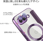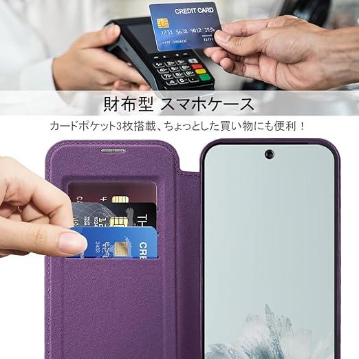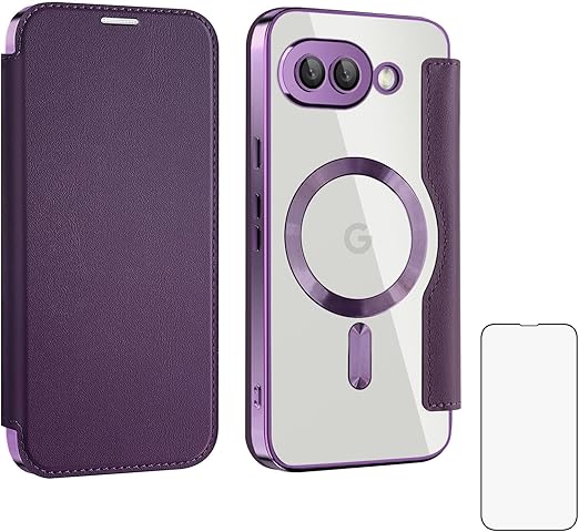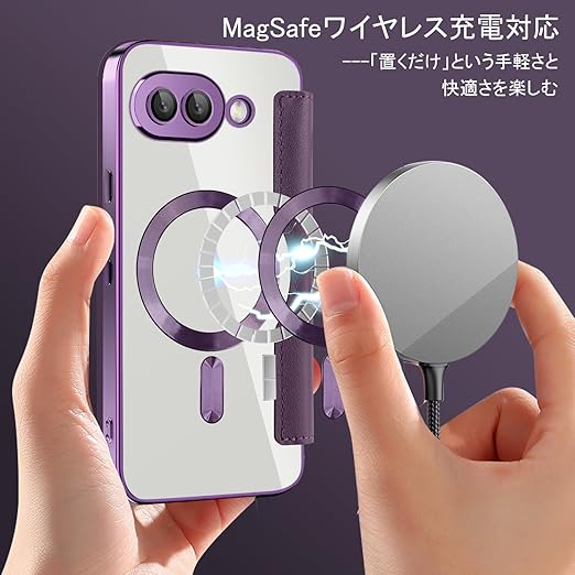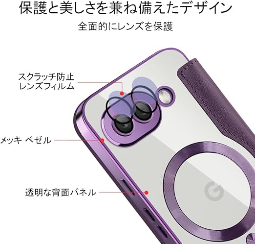 【REHOOF】google pixel9a 用 ケース 手帳型 magsafe対応 背面 透明 クリア 財布型 マグセーフ 手帳 カード収納 ワイヤレス充電対応 カード入れ PU革 レザー Pixel 9a スマホケース おしゃれ 軽量 薄型 防塵 耐衝撃 全面保護 スマホカバー(パープル) a