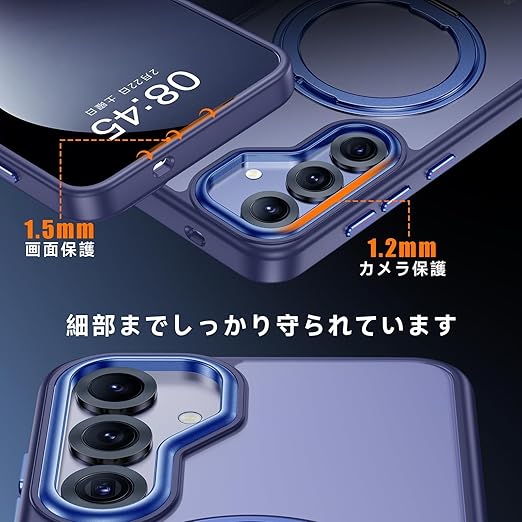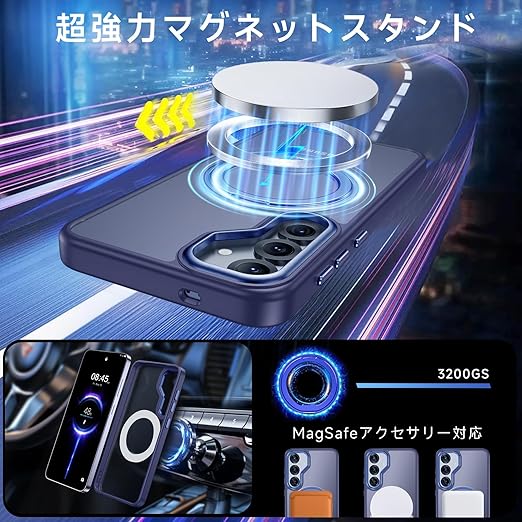 【米軍MIL規格・Magsafe対応】Galaxy S25 用 ケース MagSafe対応 リング 360°回転スタンド機能 縦横両対応 半透明 黄ばみ防止 ワイヤレス充電 レンズ保護 耐衝撃 携帯カバー ギャラクシー S25 カバー マグネット搭載 車載ホルダー マグセーフ対応 おしゃれ (ブルー) a