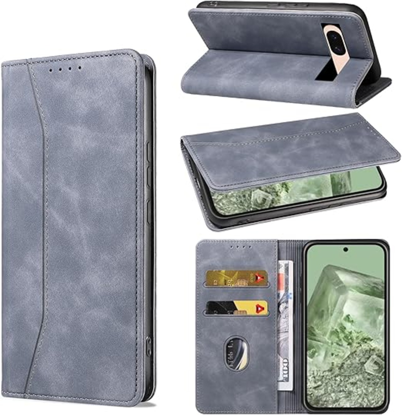 KWATUNG google pixel8a 用 ケース 手帳型 おしゃれ グーグルピクセル8a 用 ケース 手帳型 肌感レザー google pixel 8a 用 ケース 手帳型 内蔵マグネット 耐衝撃 カード収納 スタンド機能 googleピクセル8a 用ケース 手帳型 全面保護 Pixel 8a スマホケース Pixel 8a 用 手帳型ケース グレー a