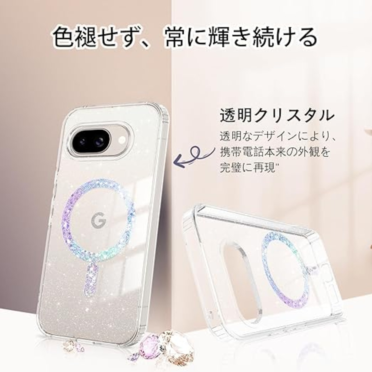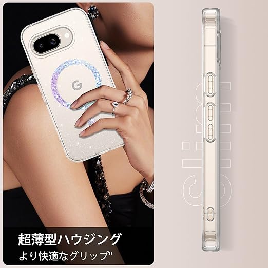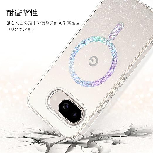 【2025新登場】YINLAI Google Pixel 9a 用 ケース クリア 耐衝撃 かわいい キラキラ マグネット式 米軍MIL規格 耐久性 黄ばみ防止 google Pixel 9aケース ワイヤレス充電対応 Google Pixel 9a 6.3インチ 用 かわいい携帯ケース 女性用 a
