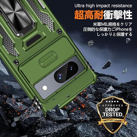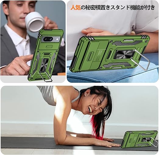 Google Pixel 9A 用ケース リング付き 衝撃吸収 耐衝撃 スタンド機能 米軍MIL規格 グーグル ピクセル9a 用ケース 全面保護 360°回転 滑り落ちにくい 人気 おしゃれ 携帯カバー 緑 WY95-154 a