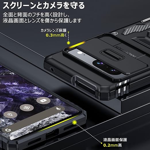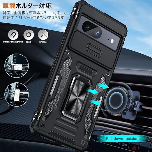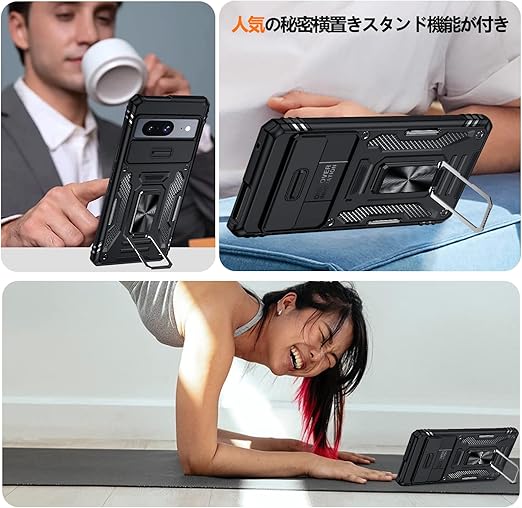 Google Pixel 9A 用ケース リング付き 衝撃吸収 耐衝撃 スタンド機能 米軍MIL規格 グーグル ピクセル9a 用ケース 全面保護 360°回転 滑り落ちにくい 人気 おしゃれ 携帯カバー 黒 WY95-151 a
