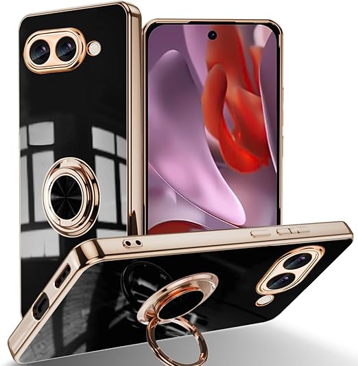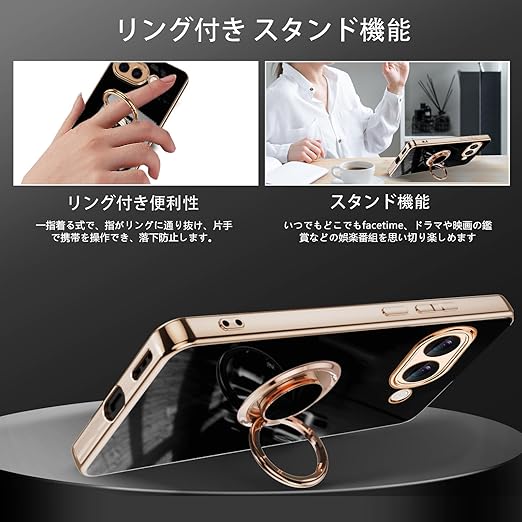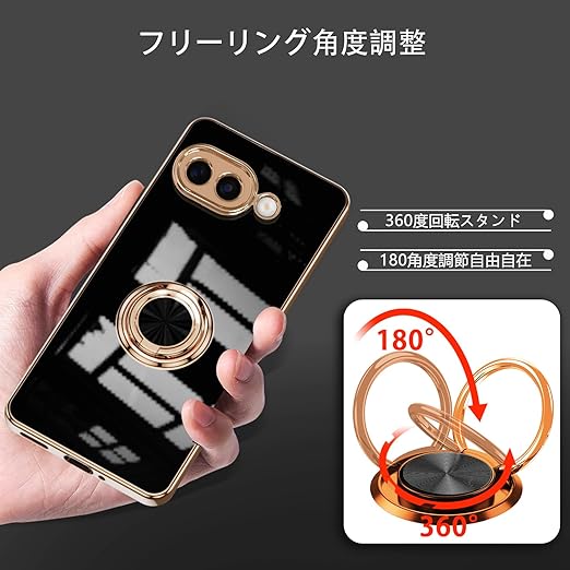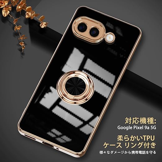 LuFiYa スマホケース Google Pixel 9a 5G 用 ケース リング付き カバー TPU素材 スタンド機能 スマホケース 軽量 耐衝撃 薄い 擦り傷防止 落下防止 車載ホルダー 360°回転 ケース Google Pixel 9a 5G 用 (ブラック) a