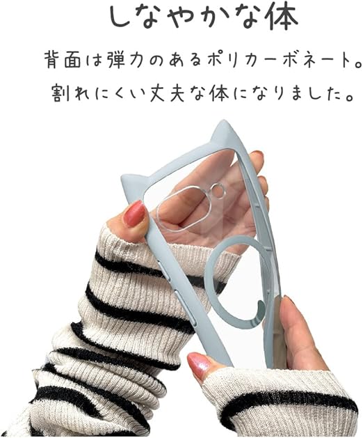 【ねこ耳が付いてカワイイ】さりげなくネコの耳をデザインした可愛く個性的なスマホケースです。また、ケース背面がクリア(透明)だから、端末色を活かすことができます。
