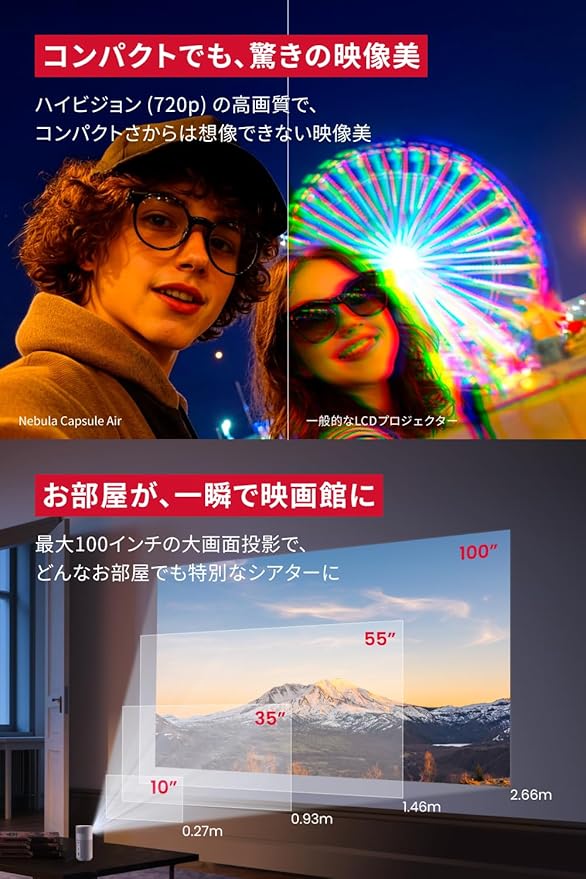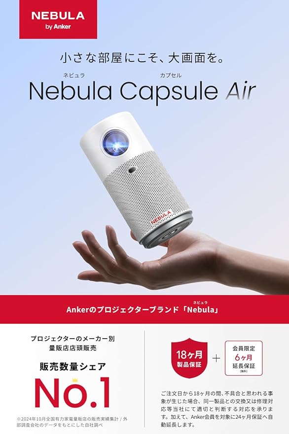 Anker Nebula Capsule Air (世界最小 Google TV搭載モバイルプロジェクター)【ハイビジョン 720P Netflix対応 150ANSI ルーメン 最大100インチ 自動台形補正 超小型 家庭用 コンパクト 天井投影 バッテリー搭載 ホワイト 最大24ヶ月保証 ネビュラ カプセル エアー】 a