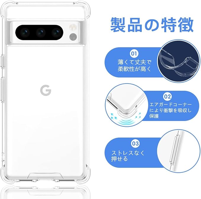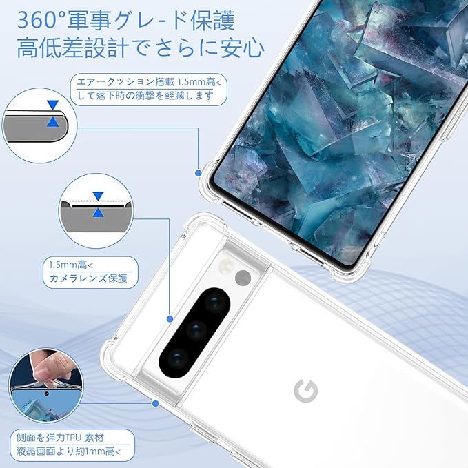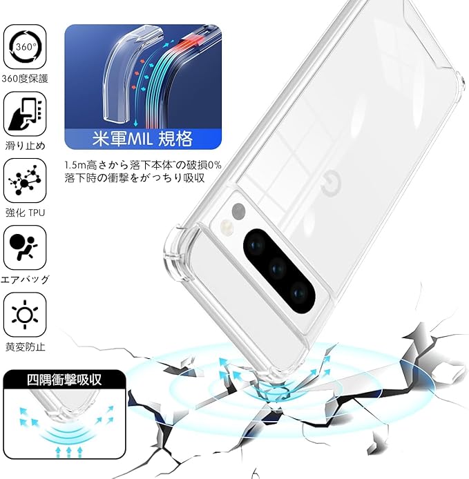Google Pixel 8 Pro 専用クリア ソフト シリコン TPU ケース 【四隅?化保護 米軍MIL規格 】 対応 グーグルピクセル8 Pro カバー 液晶 スマート Pixel 8 Pro TPUカバー ピクセル8 Pro 保護ケース 【高い透明度 黄変しにくい 超軽量 衝撃防止 落下防止 防指紋 クリアケース 取付簡単 ワイヤレス充電対応】 a