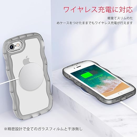 AVETUL iPhone 7/8/SE2/SE3 ケース クリア ウェーブ アイフォン7/8/SE3/SE2ケース 韓国 うねうね おしゃれ 黄ばみなし かわいい ソフトTPU 滑り止め 薄型 軽量 iPhone 7/8/SE2/SE3 スマホケース ワイヤレス充電対応 ストラップホール付き アイフォン 7/8/SE2/SE3 ウェーブ カバー 半透明 (クリア/ブラック) a