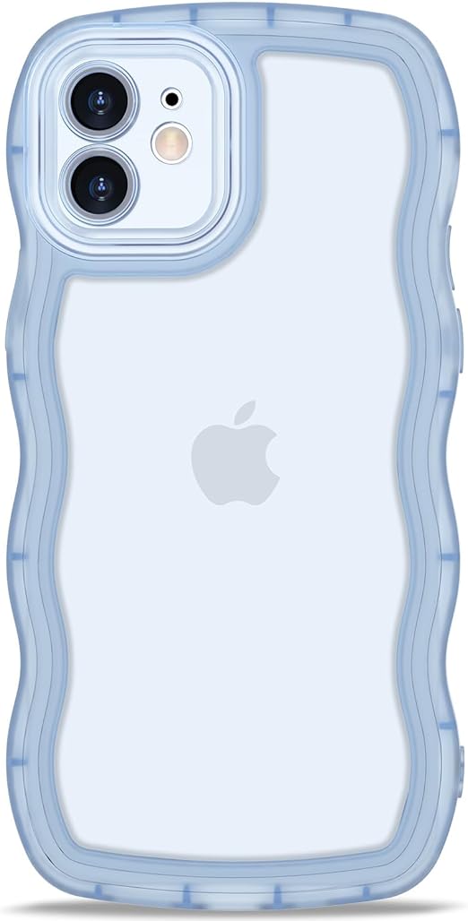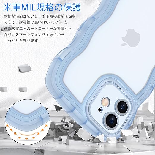 AVETUL iPhone 12 ケース クリア ウェーブ アイフォン12ケース 韓国 うねうね おしゃれ 黄ばみなし かわいい ソフトTPU 滑り止め 薄型 軽量 iPhone 12 スマホケース ワイヤレス充電対応 ストラップホール付き アイフォン 12 ウェーブ カバー (クリア/ブルー) a