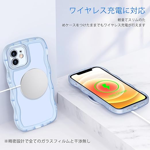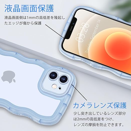 【かわいい波枠】これはiPhone 12 ケース用のクリアユニークな境界デザインで。かわいい波状の