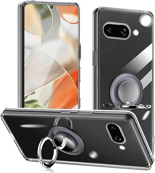 For Google Pixel 9A ケース リング付き 透明 グーグルピクセル9a スマホケース リング クリア シリコン 薄型 スタンド機能 耐衝撃 耐久 滑り止め(Pixel 9a クリア) a